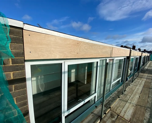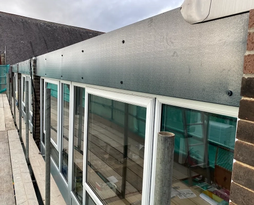 After careful consideration we believed the best way forward was to leave in situ the existing concrete fascia’s and then over cladding them; fully encapsulating the concrete.