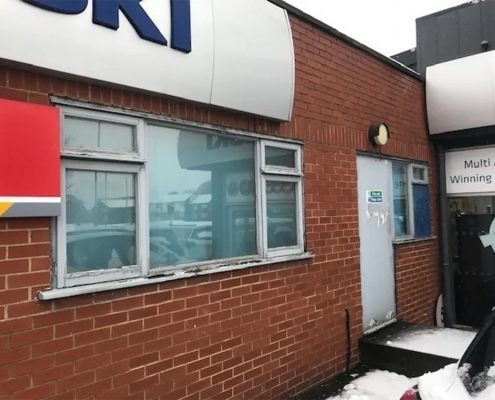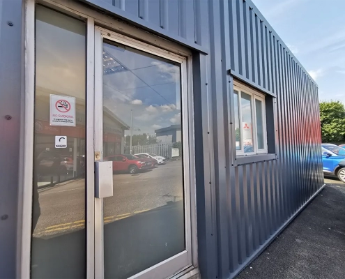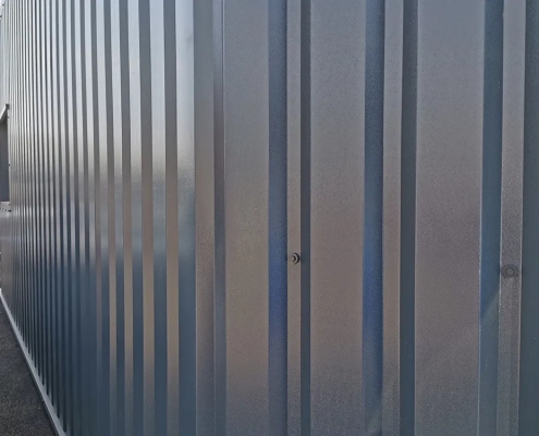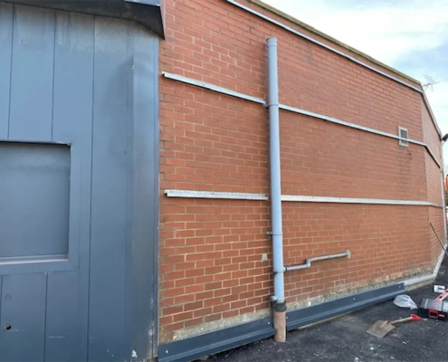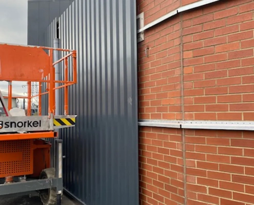 - Supplied and installed single skin ‘corrugated style’ powdered coated cladding finished in RAL7016 Anthracite to brick elevations.